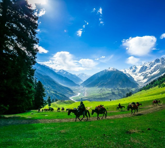 Day 2: Leave after breakfast for full day excursion tour to Pahalgam In the south-east of Srinagar situated at an altitude of 2130 mts. above sea level. It is Kashmir?s most popular resort surrounded by high mountains, dense forests, high mountain lakes, it also offers 9 hole golf course, skiing, pony trails, stay at Pahalgam.
